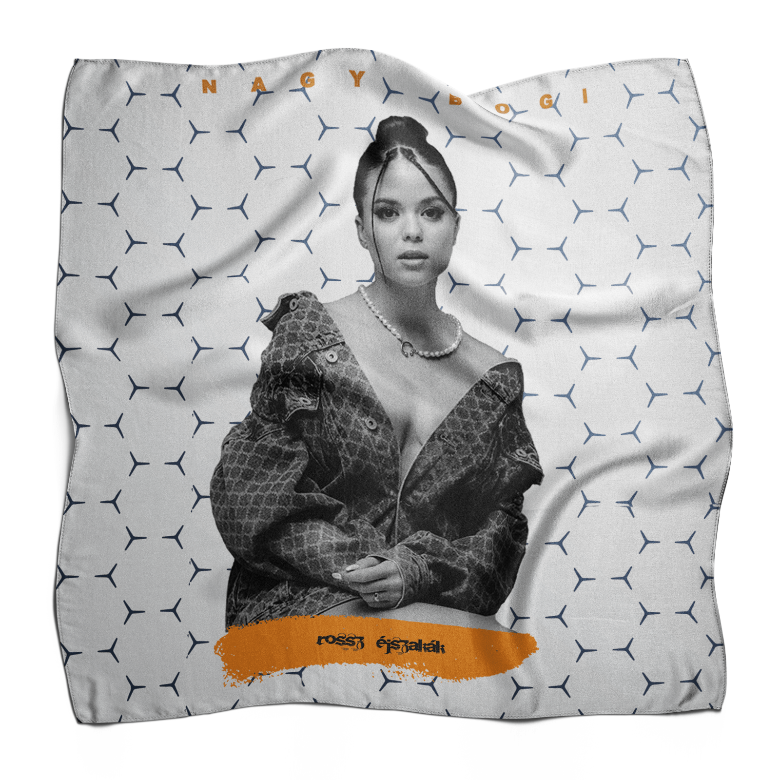Dobd fel a szetted ezzel a puha és fényes szatén kendővel, amely 50x50 cm és 70x70 cm-es méretben is elérhető! 💜 Egyedi mintája és kifinomult anyaga elegáns megjelenést kölcsönöz, legyen szó hajba kötésről, nyakba tekerésről vagy akár táskadíszként való viselésről. Könnyed, selymes tapintása kényelmes viseletet biztosít, miközben a Bogi-vibe minden outfitben visszaköszön. Tökéletes választás, ha stílusosan szeretnéd kifejezni rajongásodat! 🎶✨